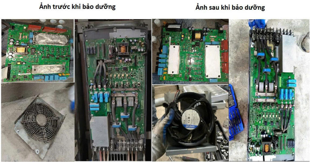 – Vệ sinh lại toàn bộ biến tần: quạt, bo mạch…
